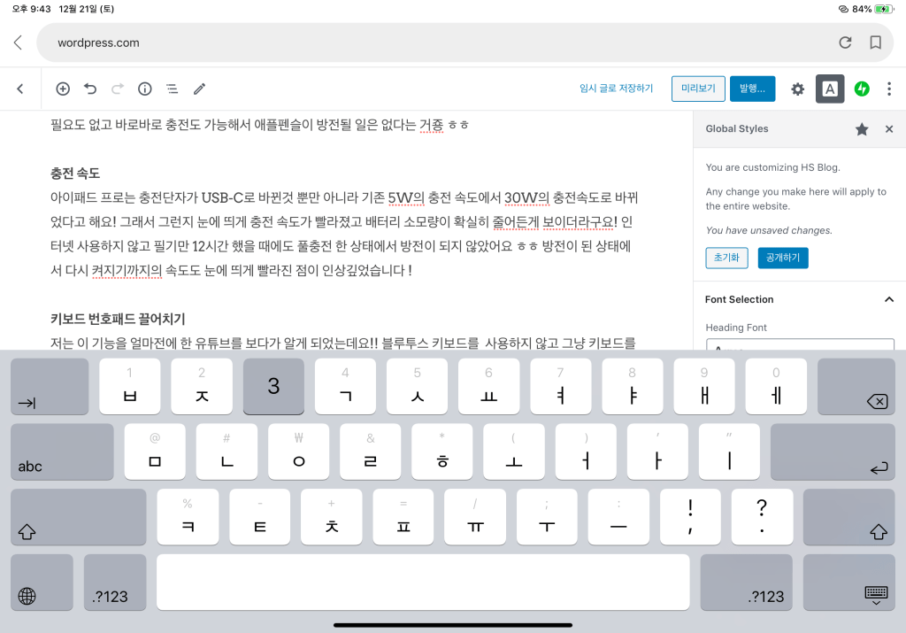 저는 이 기능을 얼마전에 한 유튜브를 보다가 알게 되었는데요!! 블루투스 키보드를 사용하지 않고 그냥 키보드를 사용할 시에 따로 전환을 하지 않더라도 키보드를 살짝 끌어치면 숫자와 특수기호를 바로 입력할 수가 있더라구요 !!
