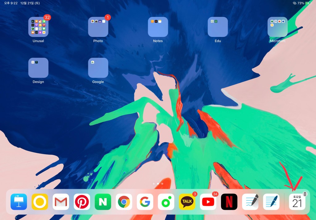 아이패드프로가 다른 아이패드 제품과 차별점을 가졌던 기능중에 하나인 스플릿 기능인데요 저는 사실 이 기능이 이렇게 까지 유용할줄 몰랐어요 ㅋㅋㅋㅋㅋㅋㅋㅋ 일반적으로 저는 필기를 하면서 오른쪽에 사전을 띄우거나 search engine을 띄워서 검색을 많이 하는데 그러면서 카카오톡 같은 메신저도 중간중간에 하기도 하구 때로는 넷플릭스를 동시에 띄우기도 할 수 있으니까 정말 너무 유용한 것같아용 화면 비율도 1:1 뿐만 아니라 메인으로 사용하고 있는 어플을 4:3으로 띄워서 더 활용도 높게 사용하는 거죠! ㅎㅎ