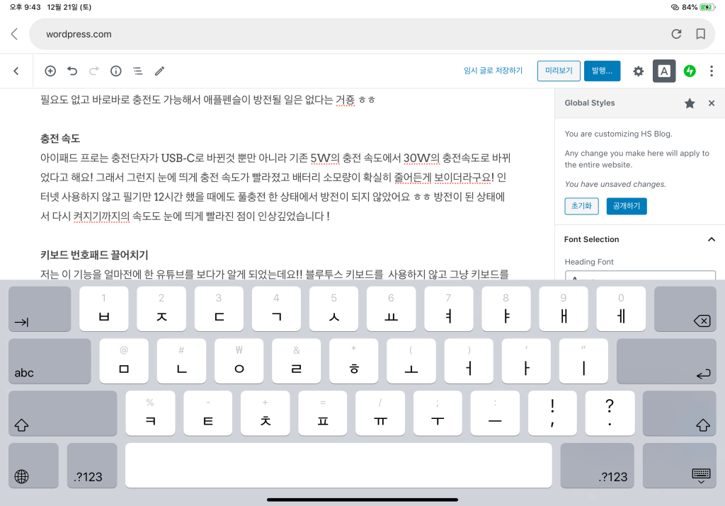 그리고 애플펜슬 2세대가 1세대와 가장 다른 점은 아무래도 충전 방식이잖아요! 프로 3세대의 옆 부분에 자석 충전단자가 있고 애플 펜슬을 사용하지 않을 때 바로 그 옆에 접착을 해서 충전 및 페어링을 할 수 있다는 것! 평소에 잃어버리기 선수(?)인 저에게 안성맞춤인….ㅋㅋㅋㅋㅋ애플펜슬을 따로 충전하지 않아도 되서 충전기를 갖고 다닐 필요도 없고 바로바로 충전도 가능해서 애플펜슬이 방전될 일은 없다는 거죵 ㅎㅎ